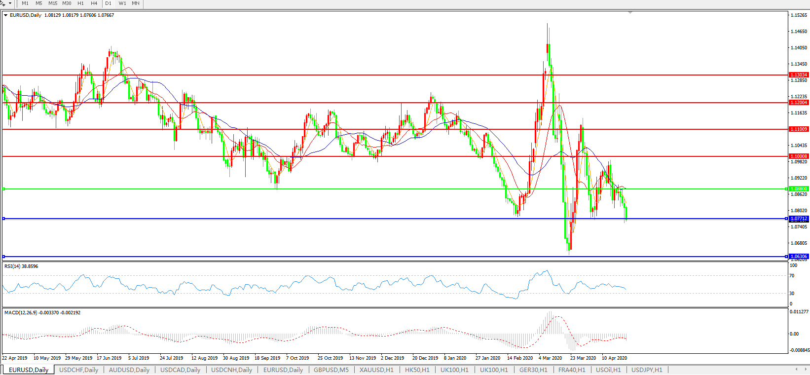 欧元兑美元EURUSD 日线图: