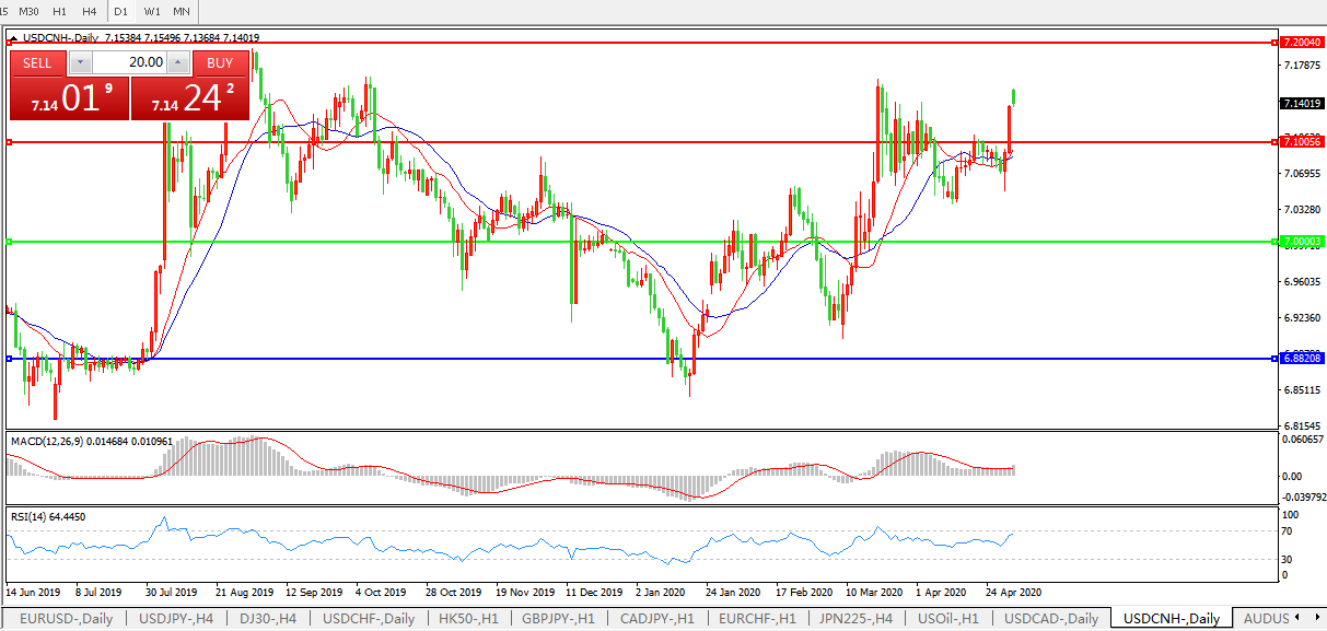 美元兑人民币USDCNH    日线图: