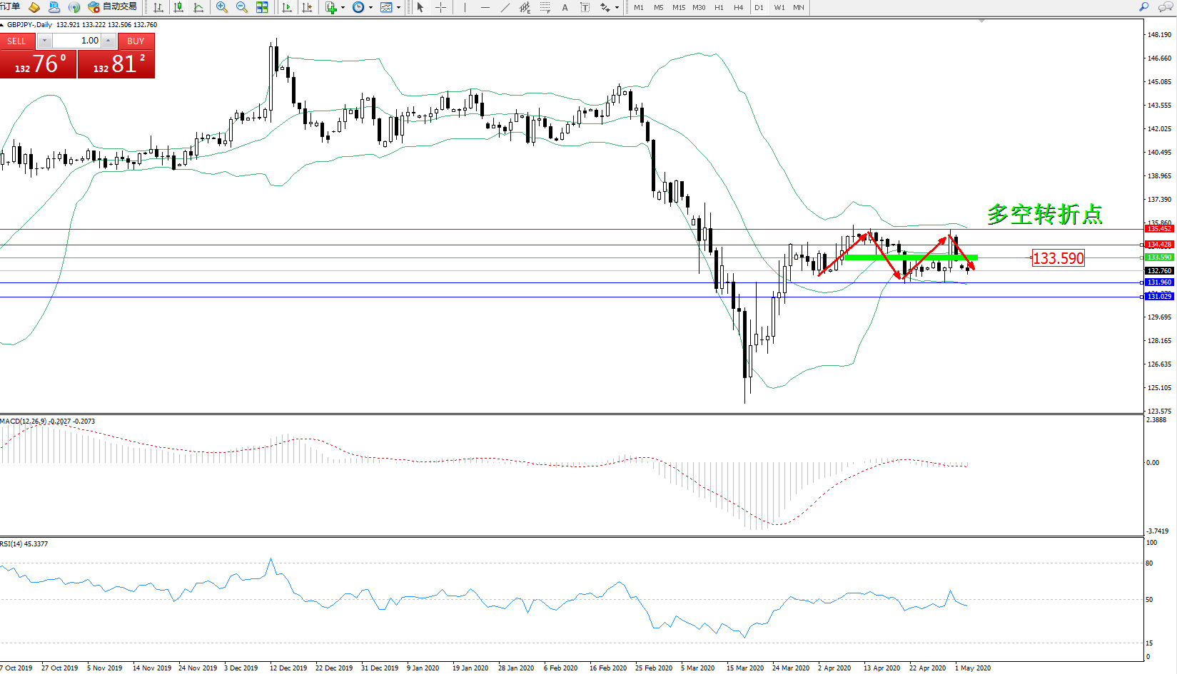 多空转折点:133.590