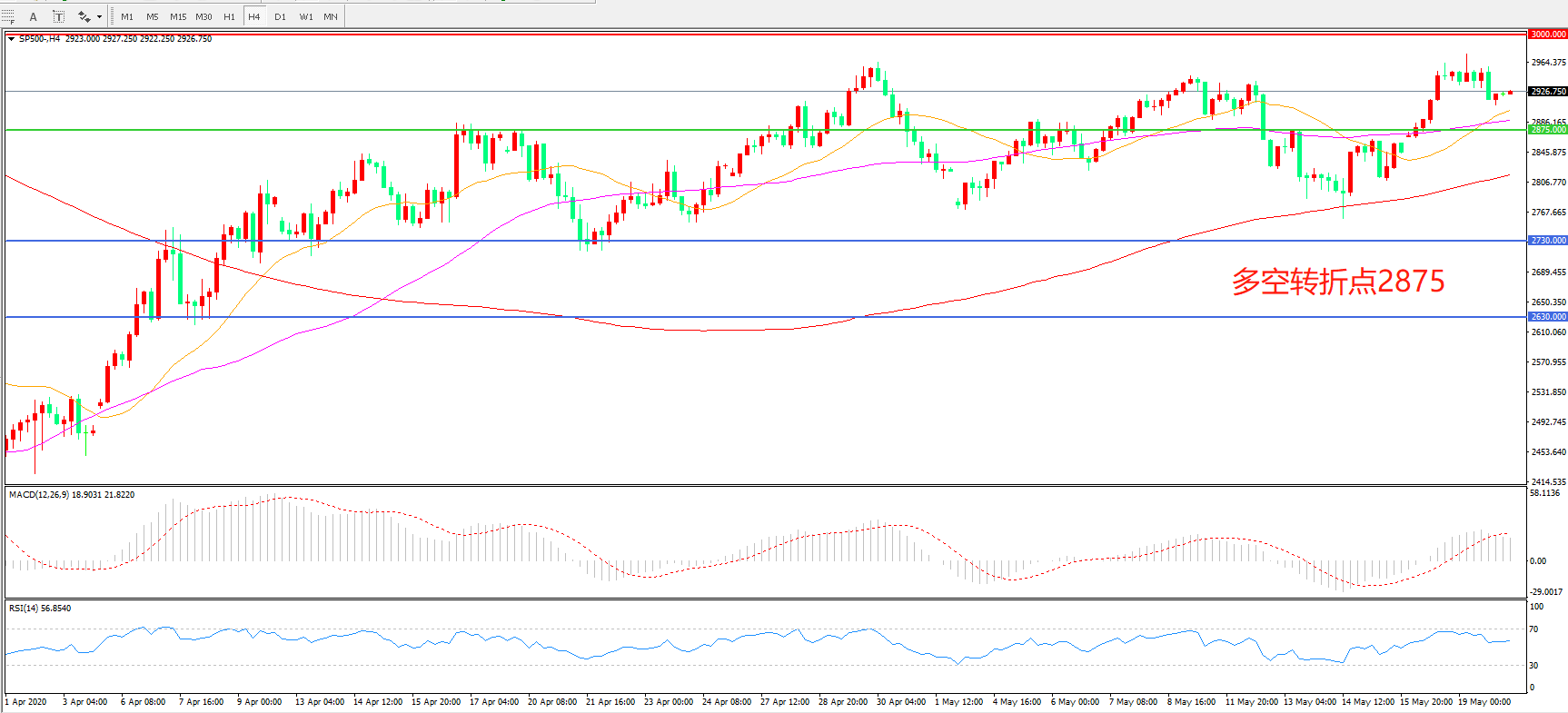 标普500 SP500   4小时图