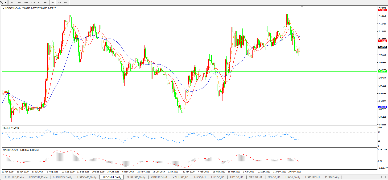 美元兑人民币USDCNH    日线图: