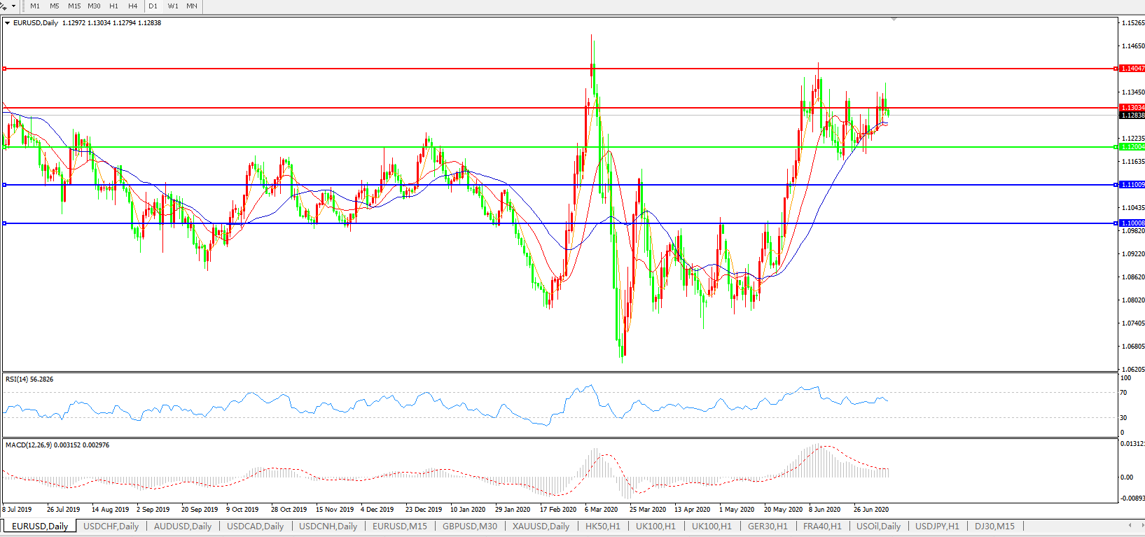 交易策略:1.1200上方看涨,目标1.1300、1.1400