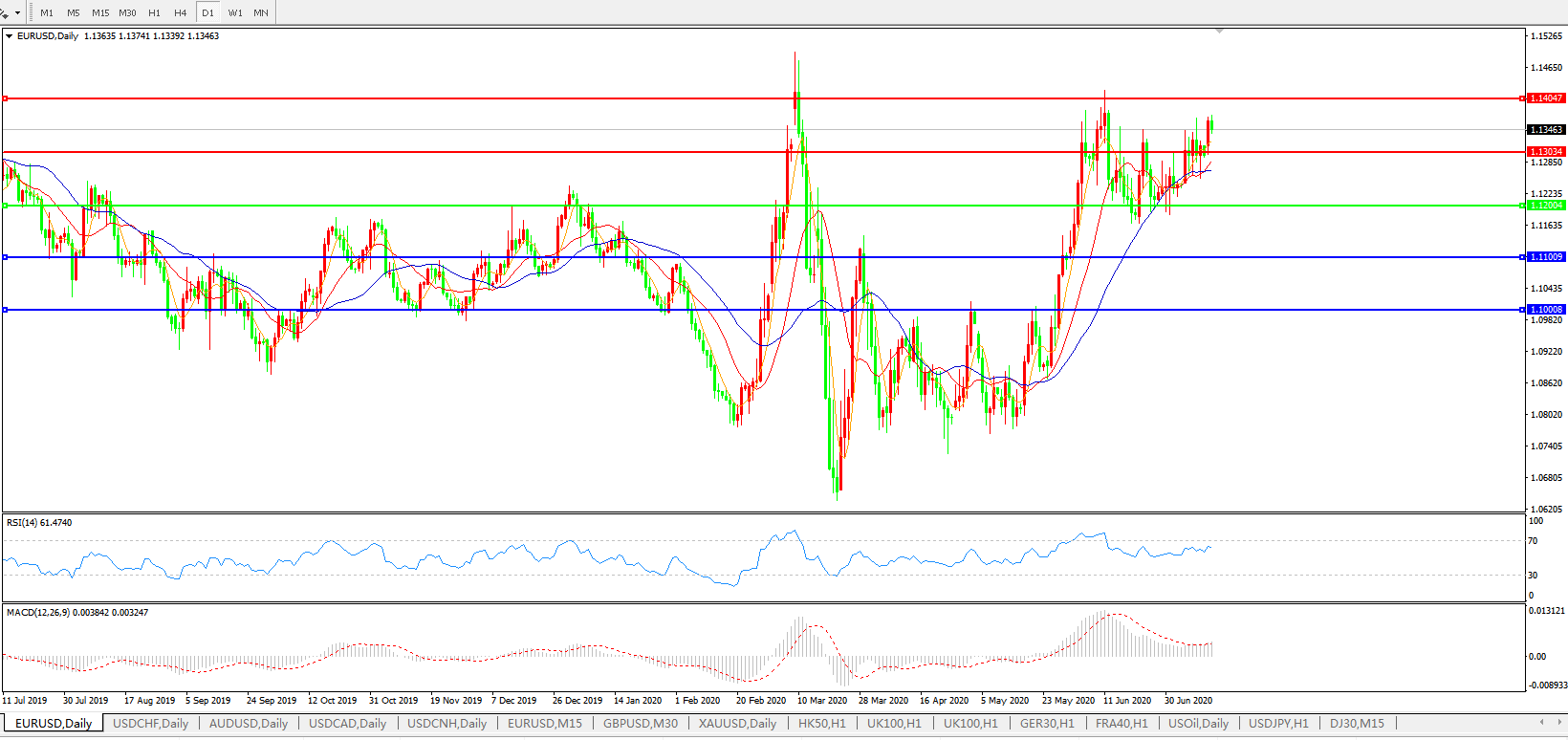 欧元兑美元EURUSD   日线图: