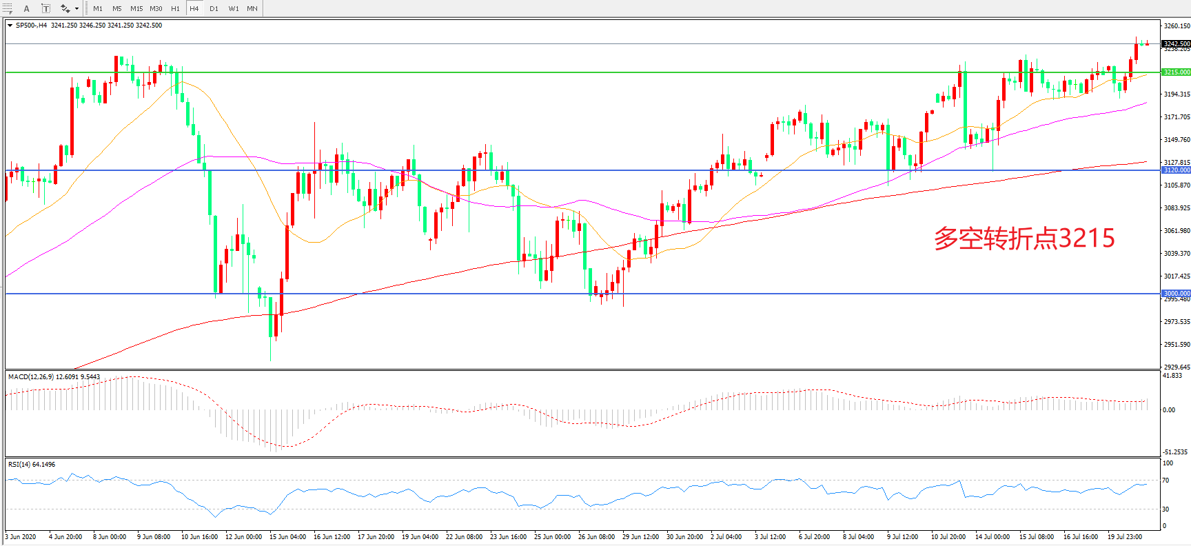 多空转折点:3215.00
