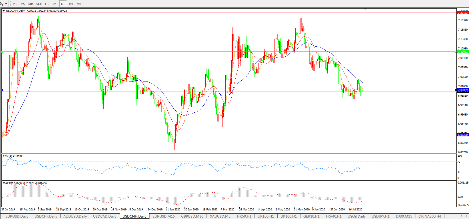 美元兑人民币USDCNH    日线图: