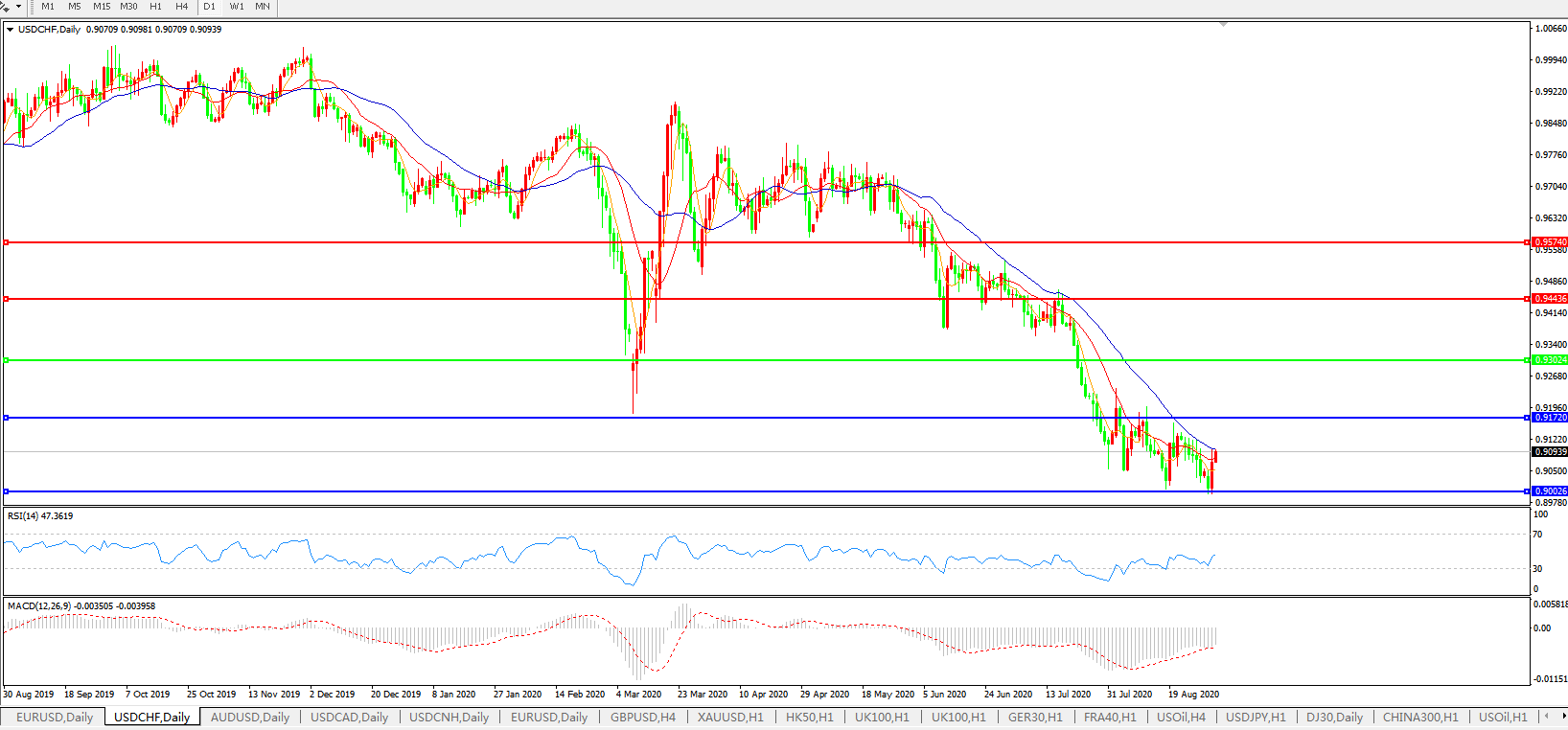 美元兑瑞郎USDCHF 日线图: