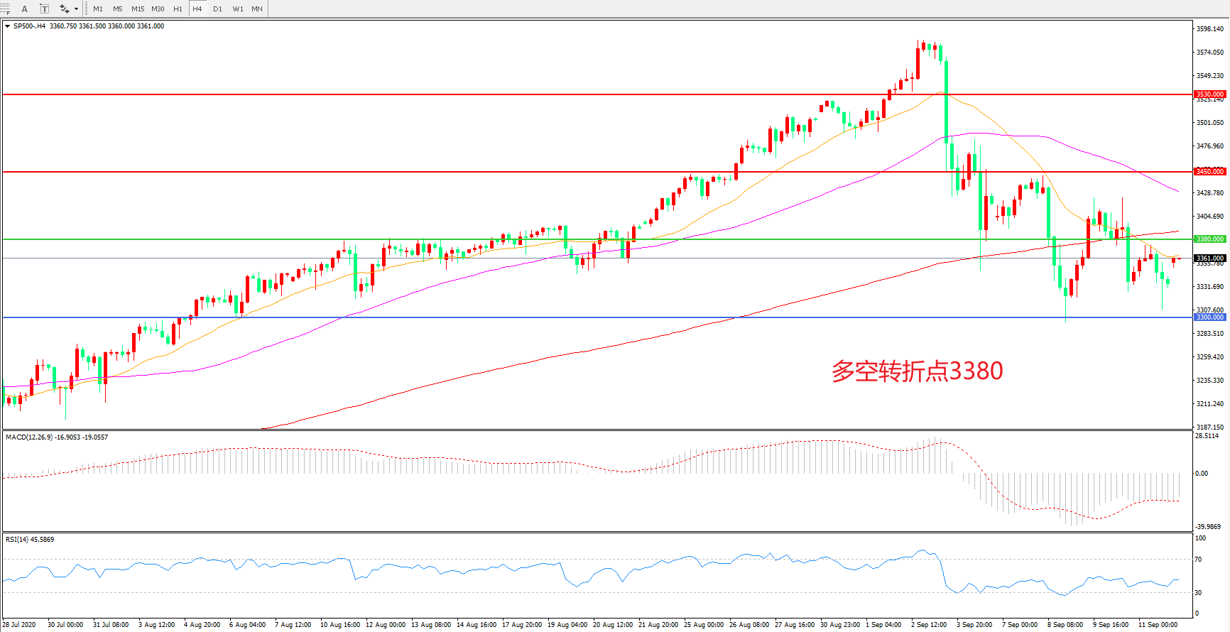 多空转折点:3380.00