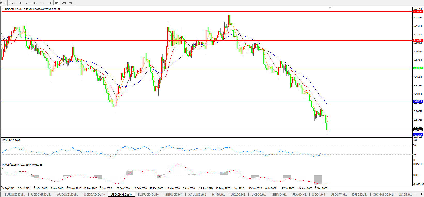 美元兑人民币USDCNH 日线图: