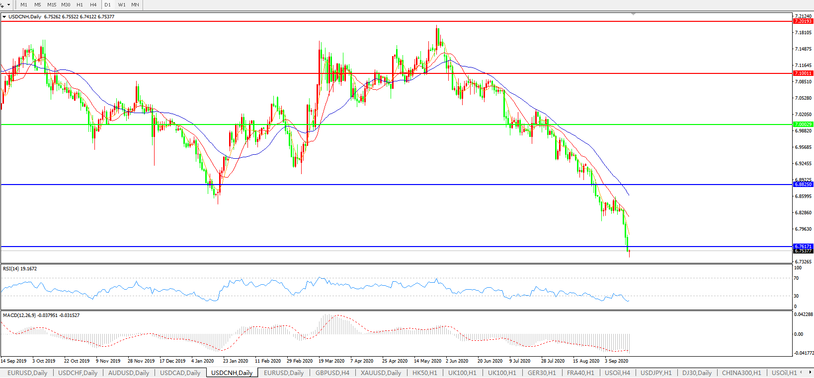 美元兑人民币USDCNH 日线图: