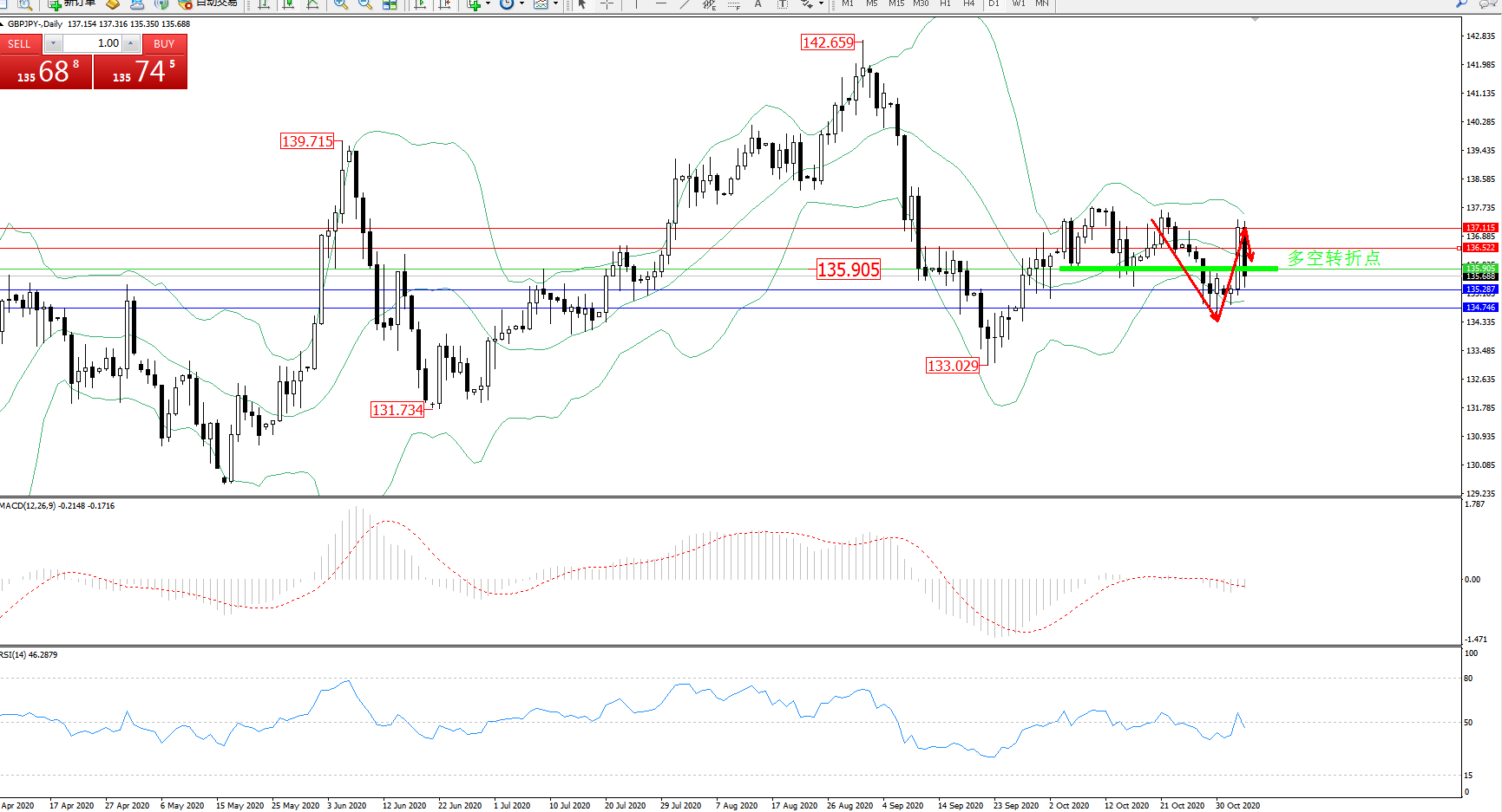多空转折点:135.905