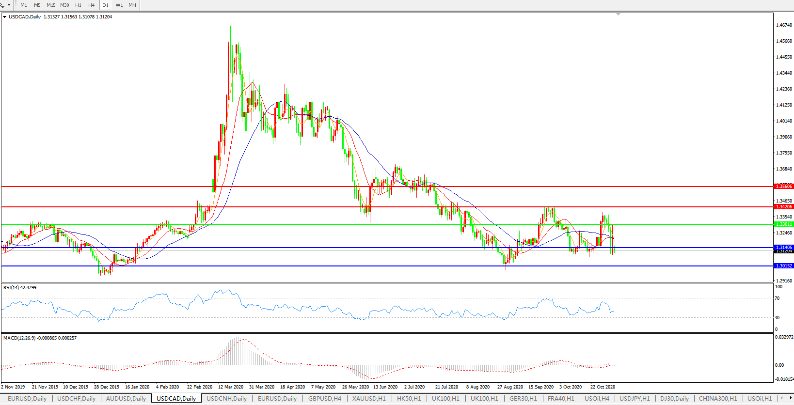 美元兑加元USDCAD 日线图: