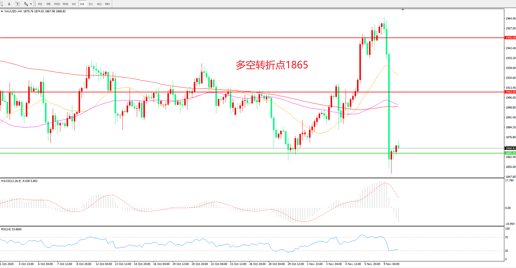 现货黄金XAU/USD    4小时图
