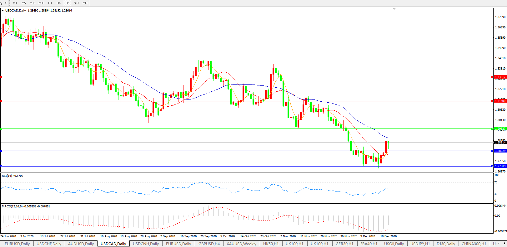 美元兑加元USDCAD    日线图: