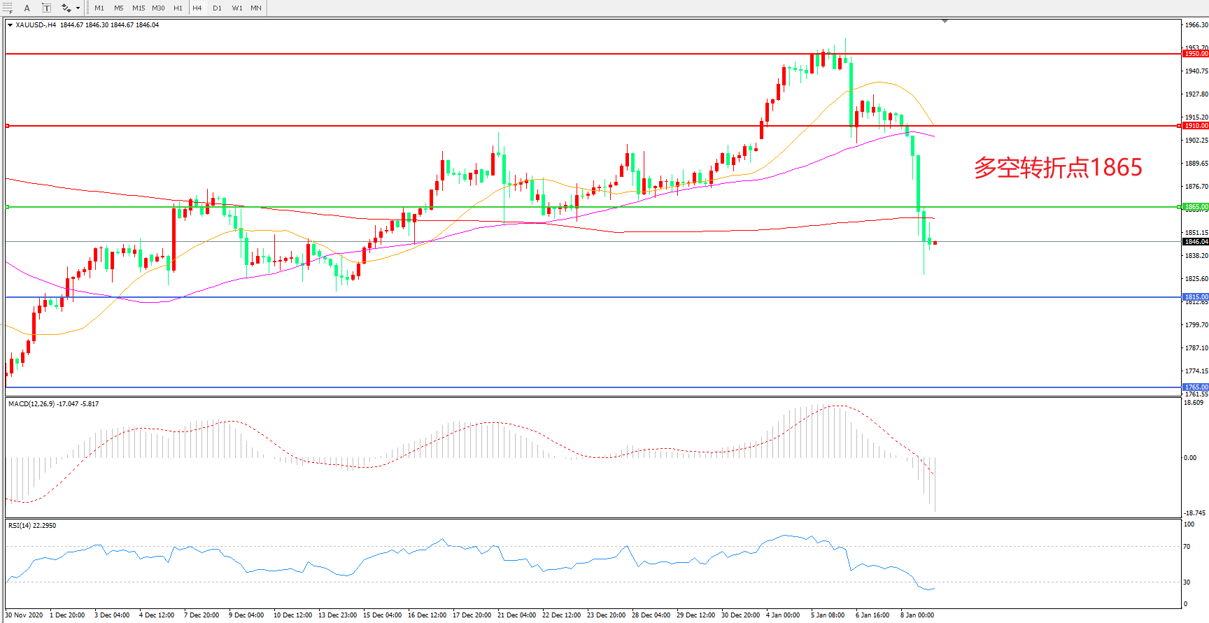 交易策略:在1865.00之下看跌,目标1815.00   1765.00