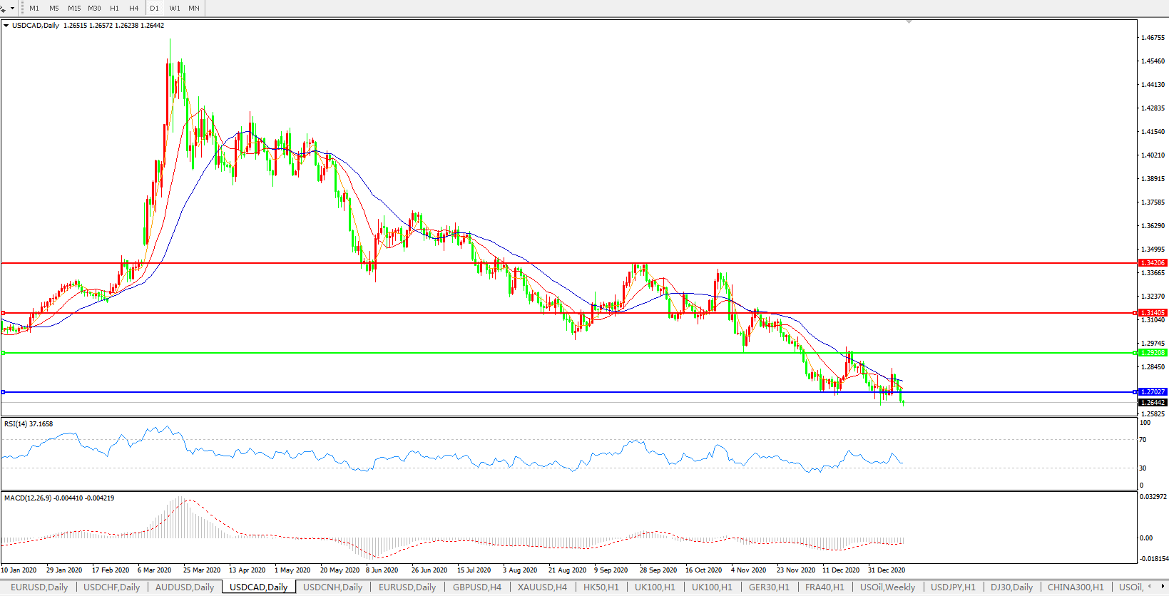 美元兑加元USDCAD    日线图: