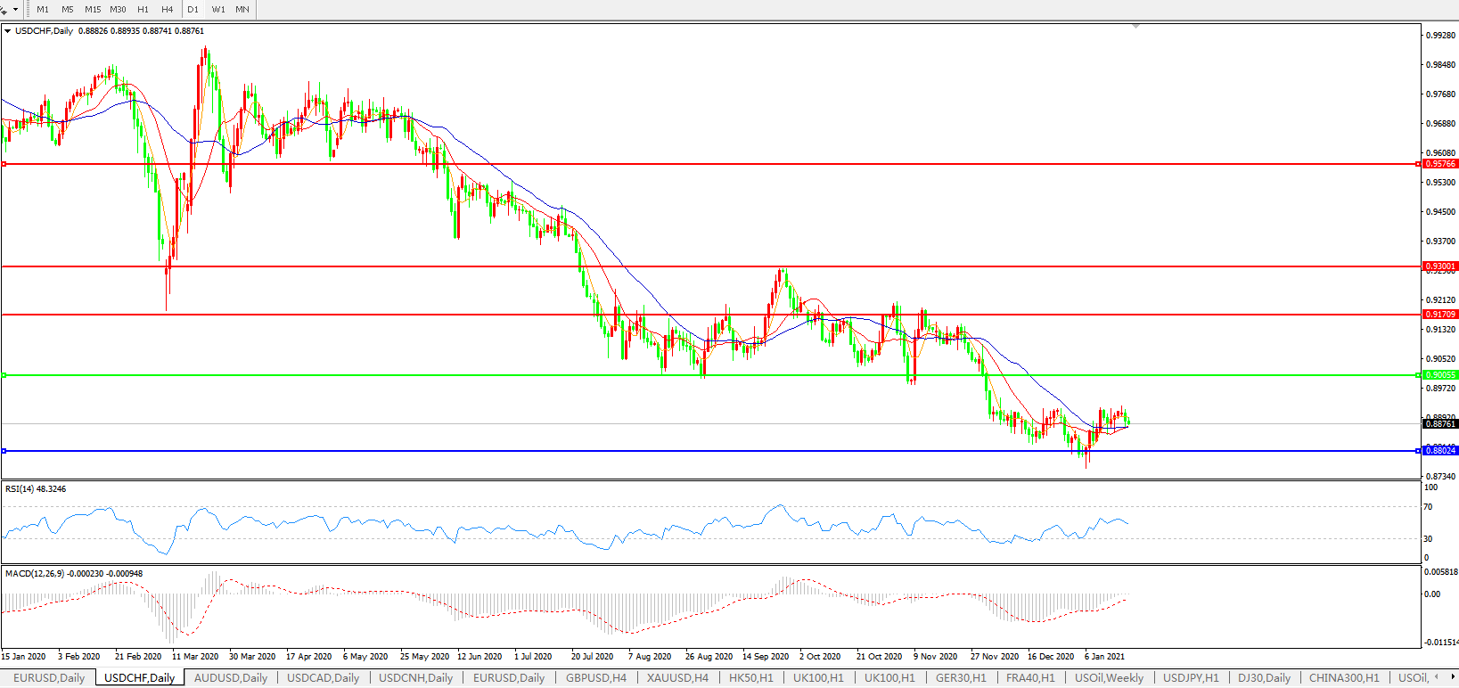 美元兑瑞郎USDCHF    日线图: