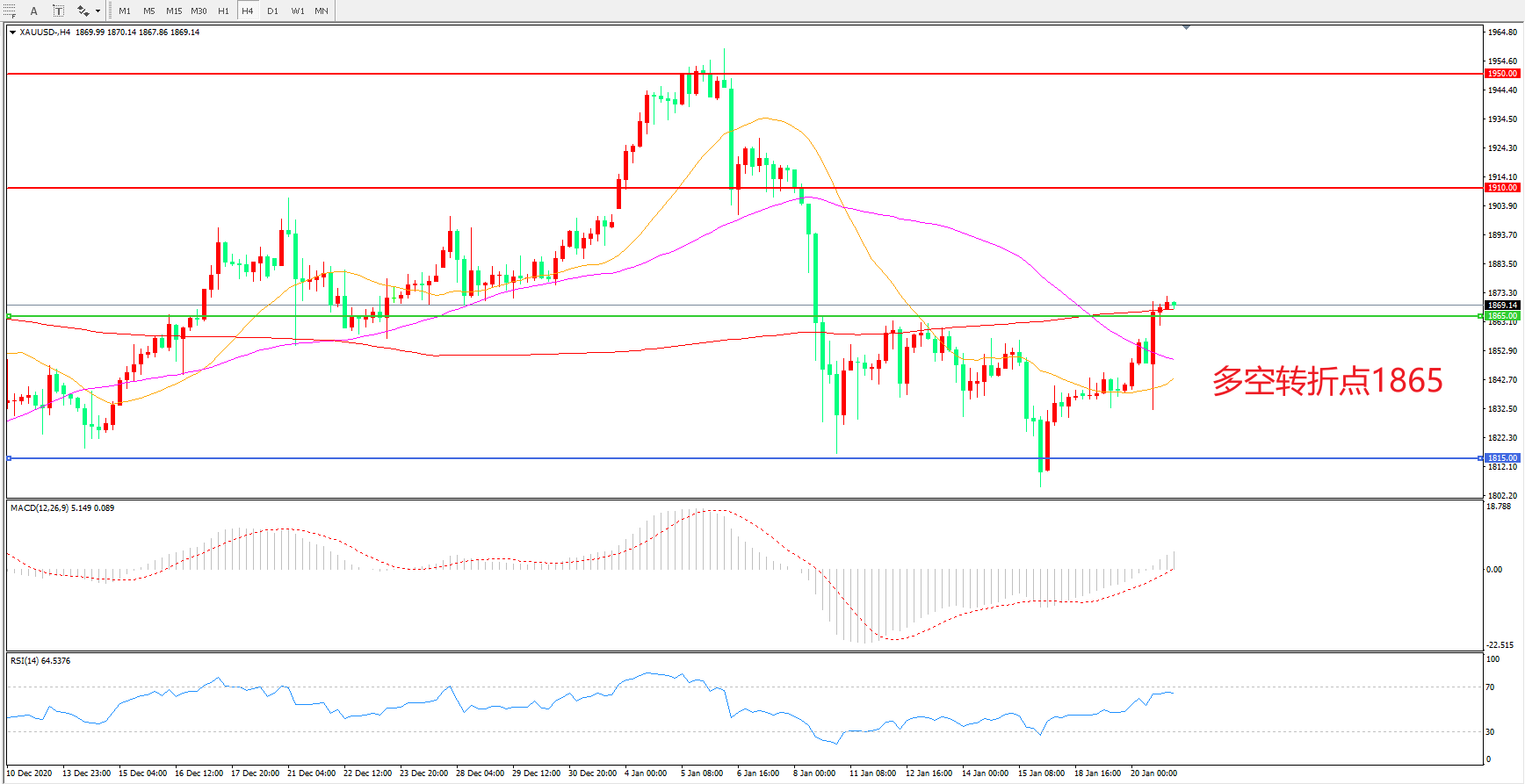 多空转折点:1865.00