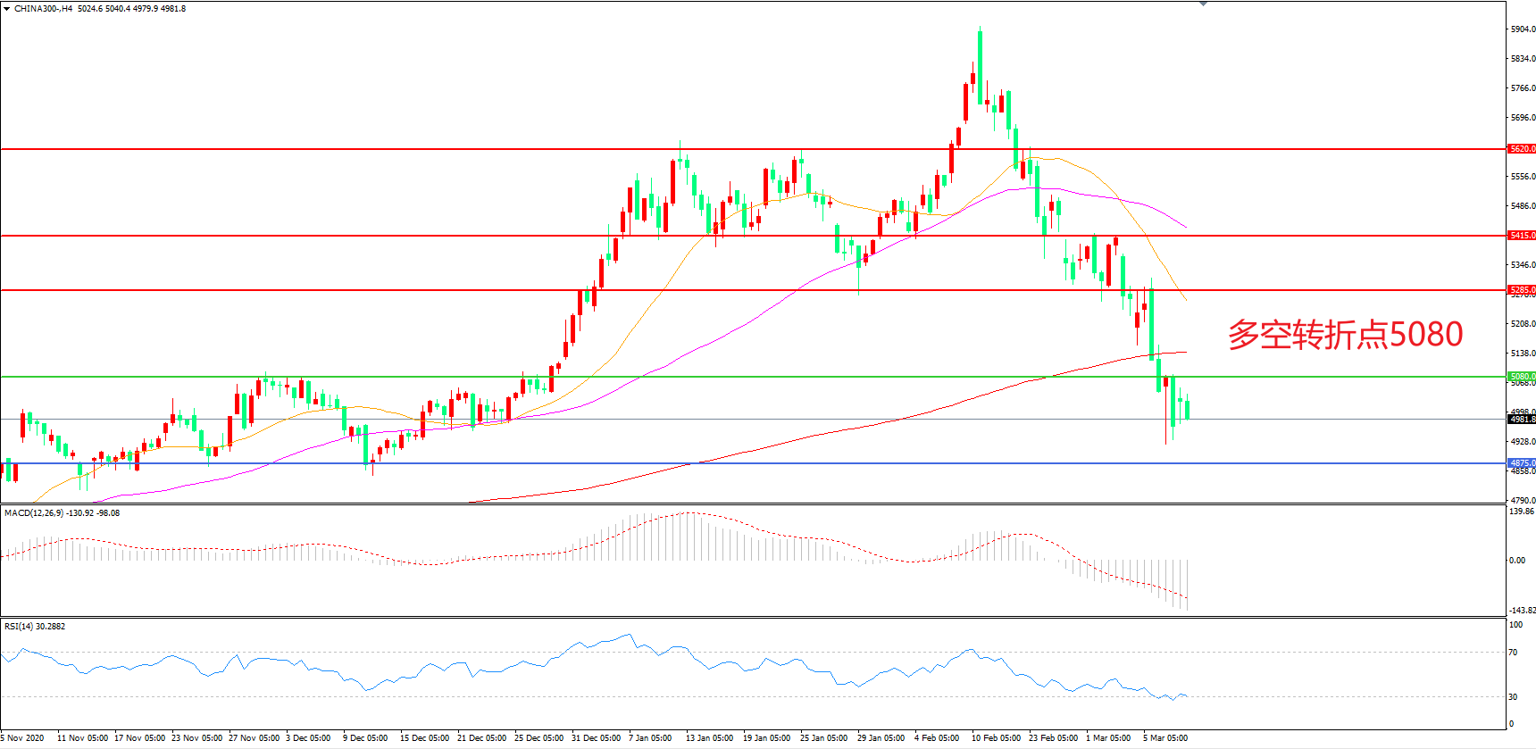 交易策略:在5080.00之下看跌,目标4875.00    4770.00