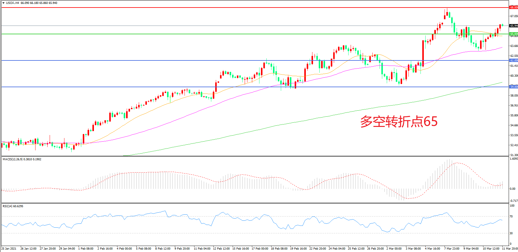 昨日,美国总统拜登签署了1.9万亿美元的新冠纾困救助法案,这标志着该法案正式生效,随着天量刺激逐渐投放市场,宏观情绪再次转向乐观,EIA数据中美国汽油库存下降,对终端产品的强劲需求抵消了多头顾虑,短期之内油价似乎不太可能有大跌的条件,投资者可以在控制好风险前提下继续参与做多机会。