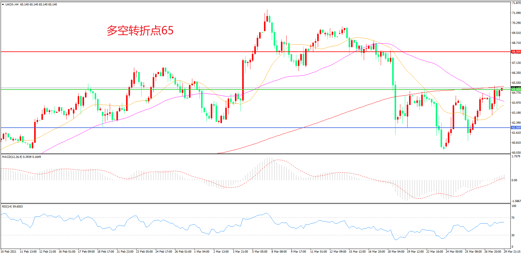 周一(3月29日),在OPEC大会即将召开前,市场有报道称,俄罗斯将支持5月大致维持产量不变,市场信心受到提振,布伦特原油日内大幅拉升,收报65.14美元/盎司。在今年原油需求回升相对确定但略显不足的大前提下,供给就是决定原油价格的核心因素。目前OPEC+正在与美国页岩油进行产量的动态博弈,页岩油减产,OPEC+也将随之减产维持高油价抢夺利润,页岩油增产,OPEC+也会随之增产抢占份额。