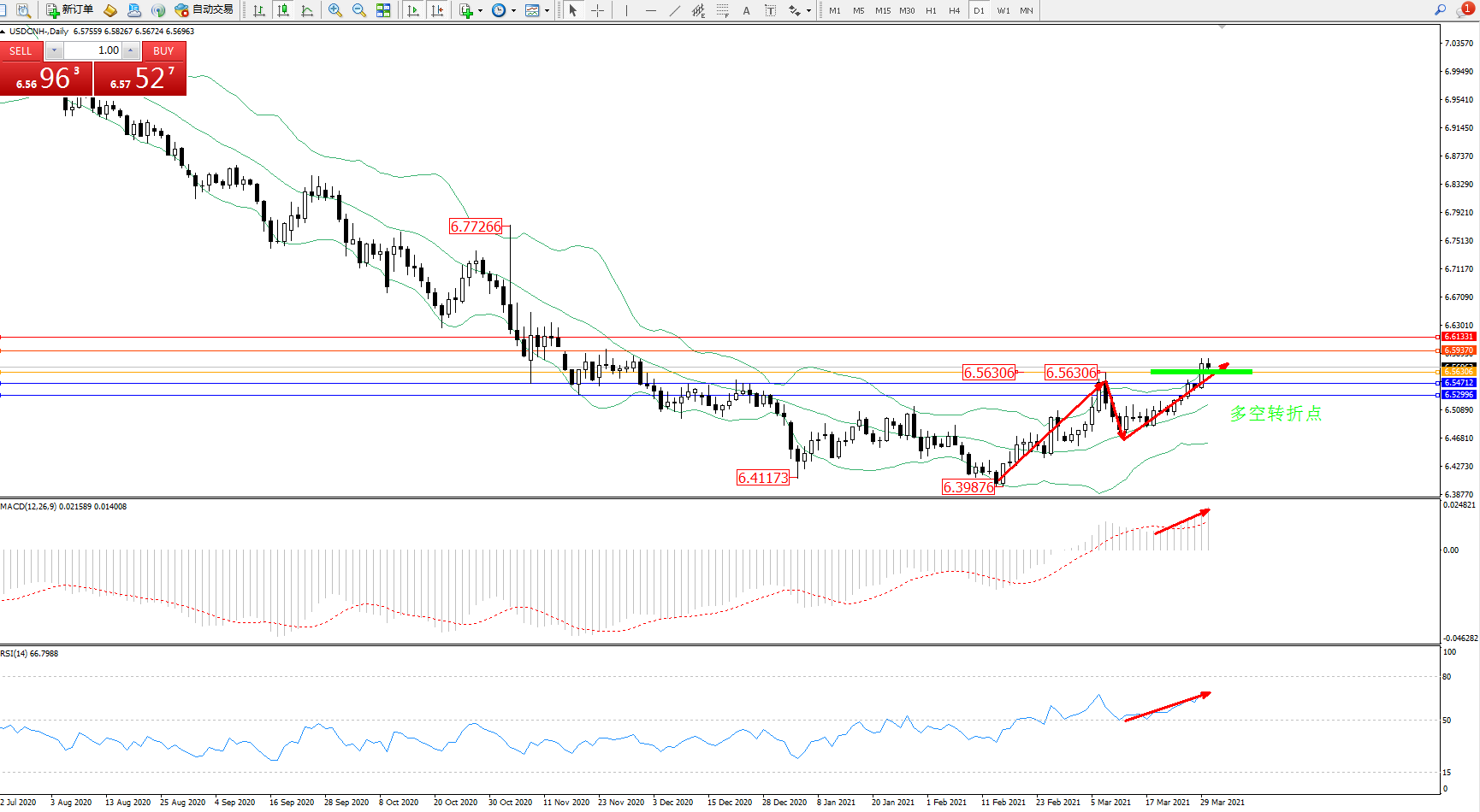 交易策略:6.56306上方看涨,目标6.59370、6.61331