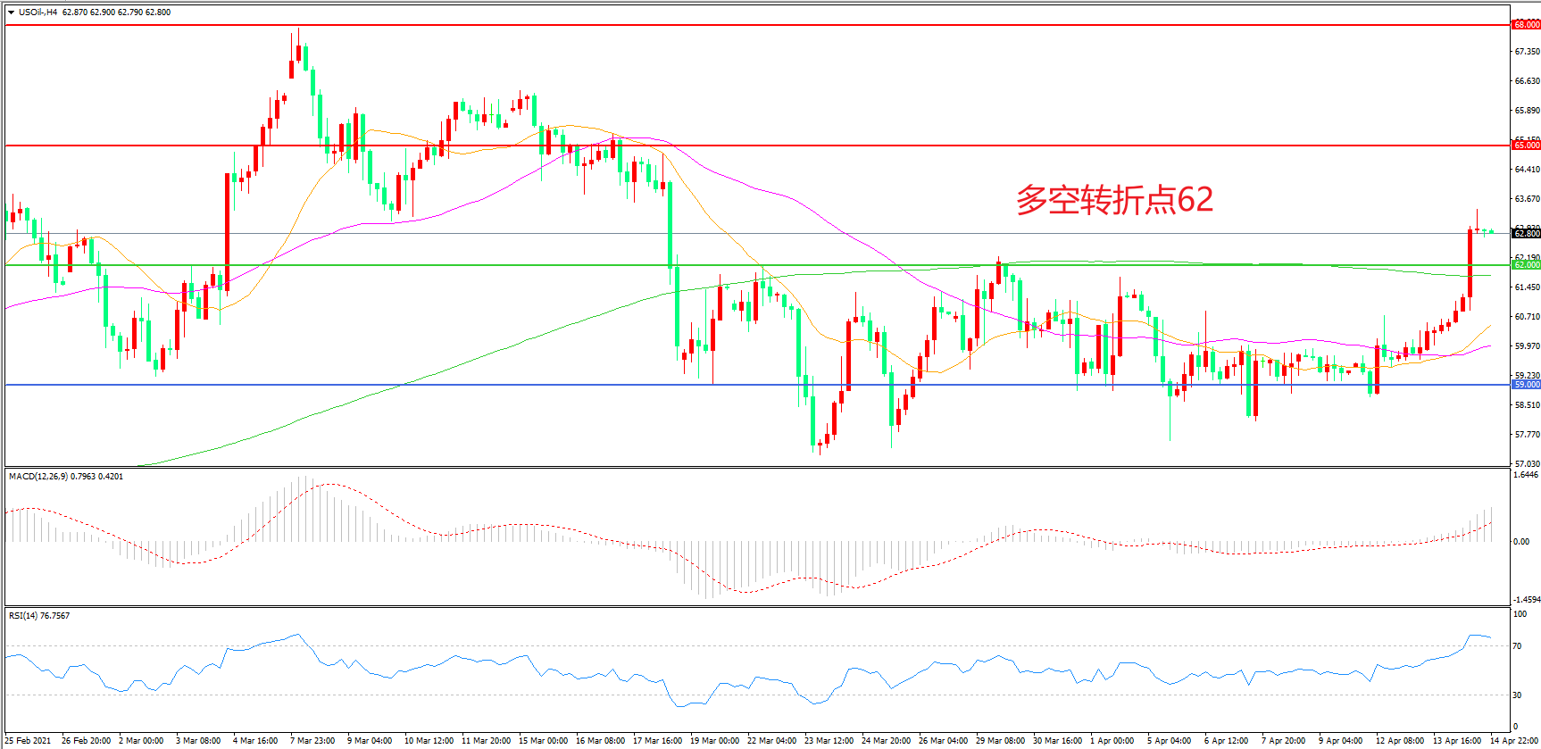 交易策略:在62.00之上看涨,目标65.00 68.00