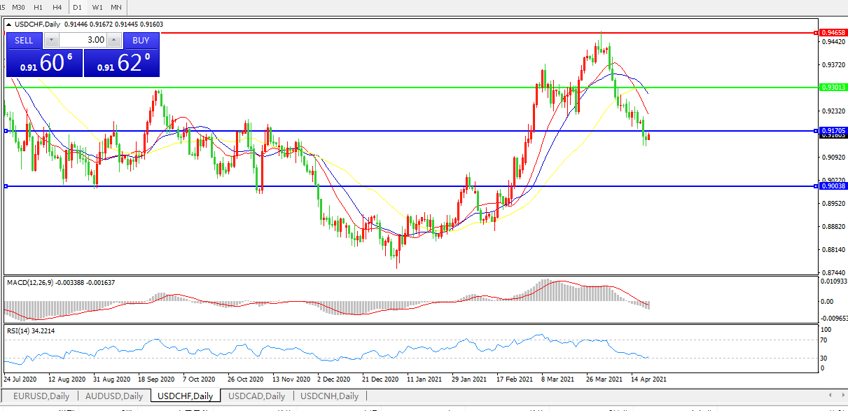 美元兑瑞郎USDCHF 日线图:
