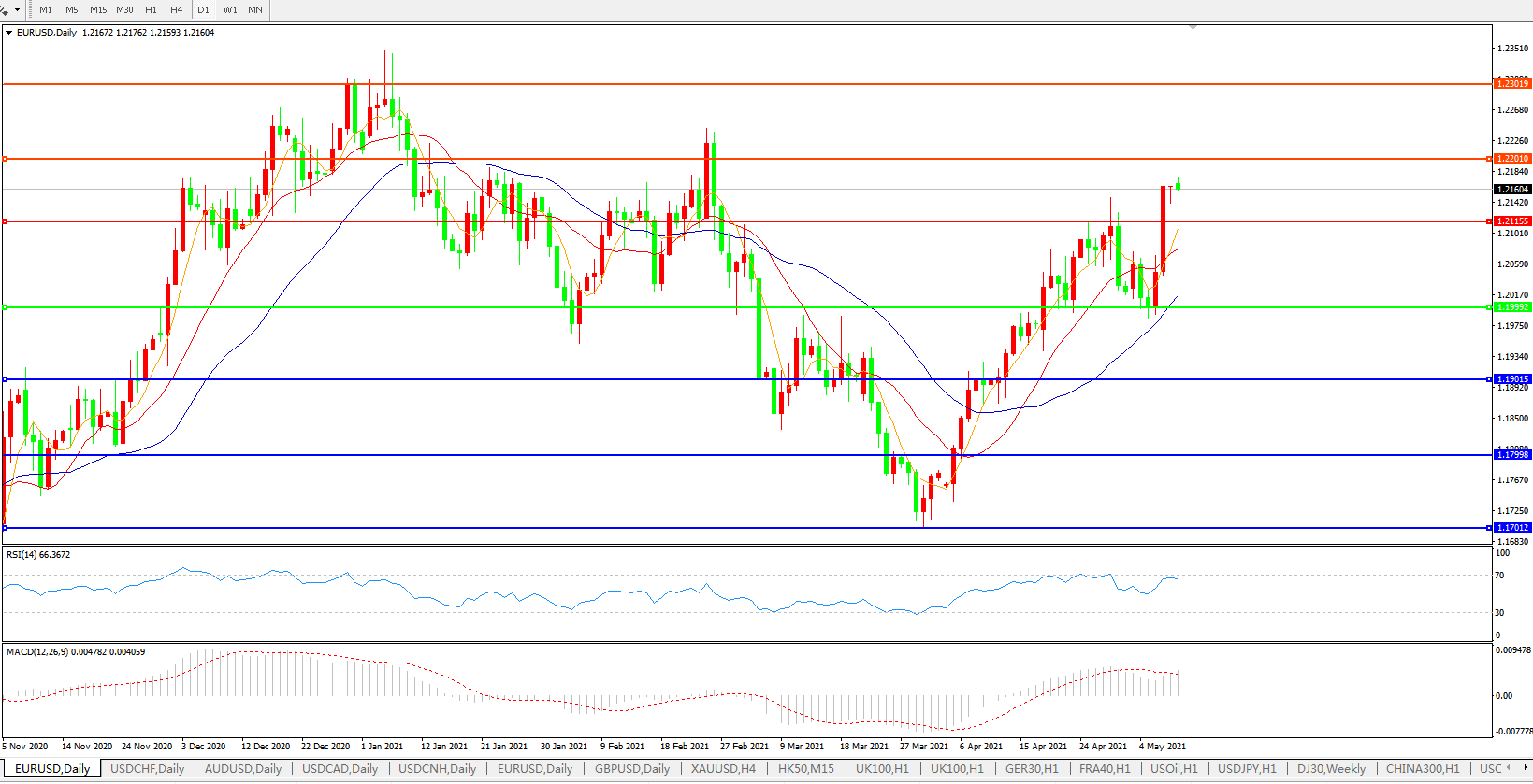 欧元兑美元EURUSD 日线图: