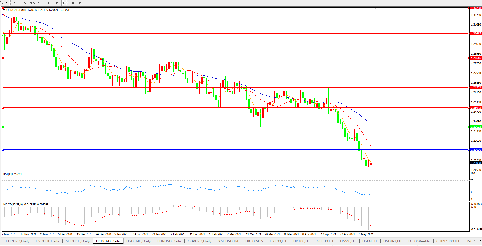 美元兑加元USDCAD 日线图: