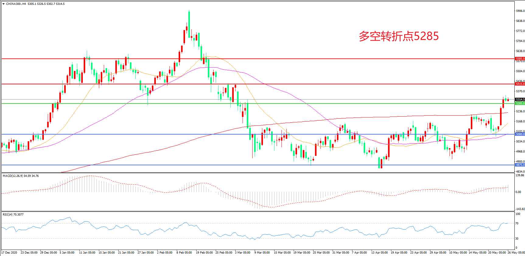 多空转折点:5285.00