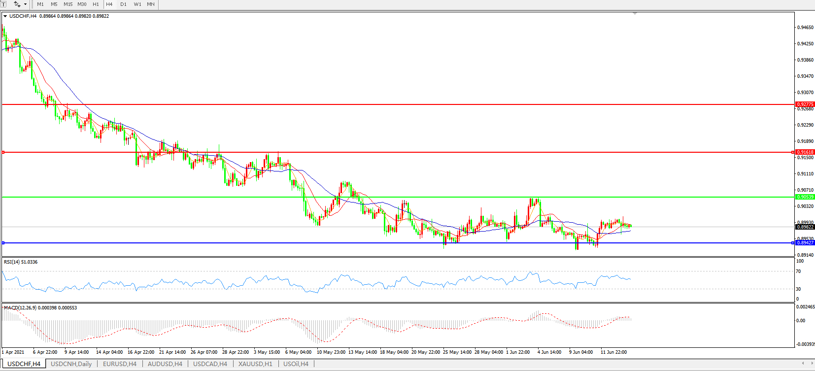 美元兑瑞郎USDCHF 4小时图: