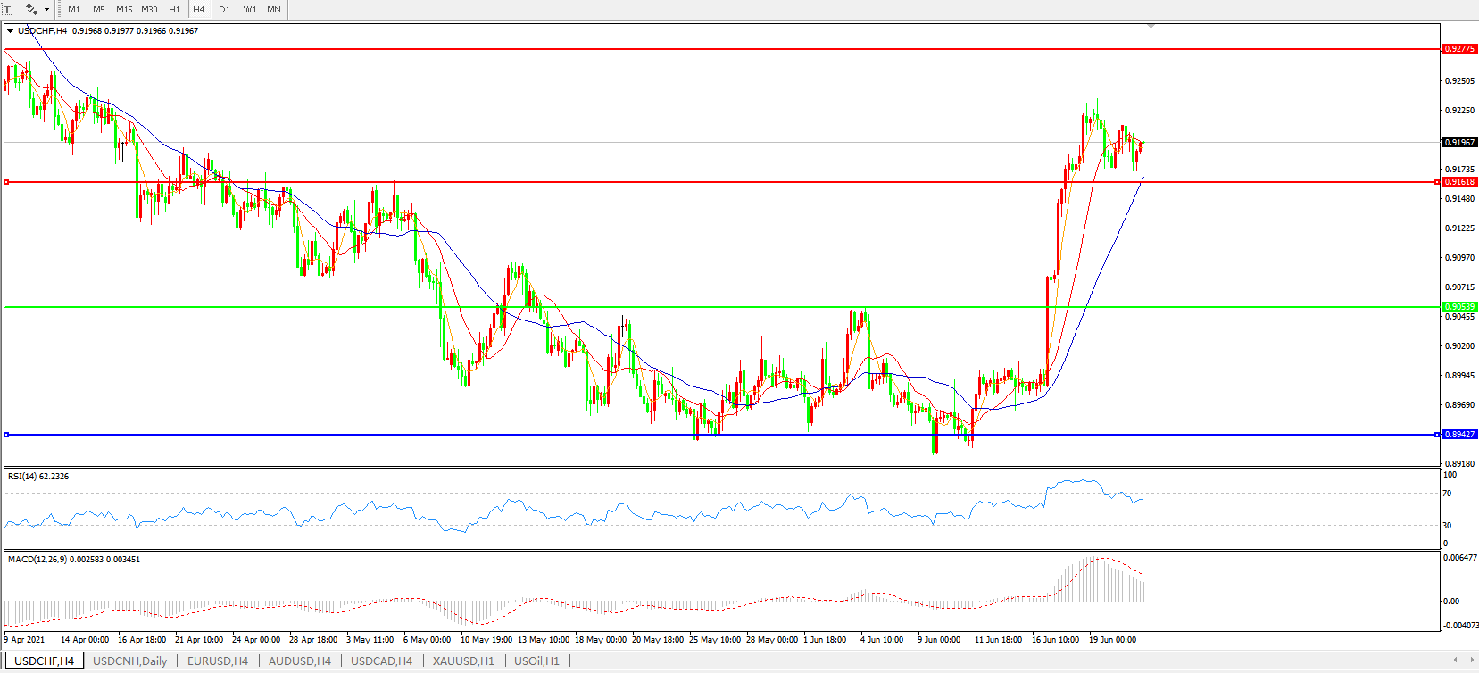 美元兑瑞郎USDCHF    4小时图:
