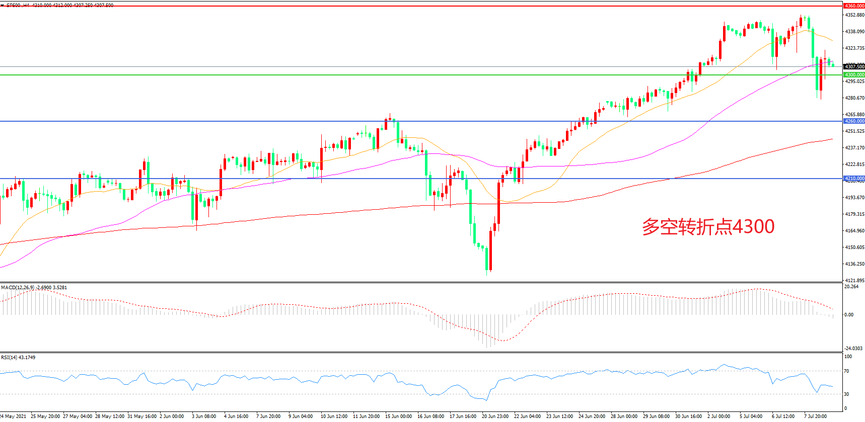 多空转折点:4300.00