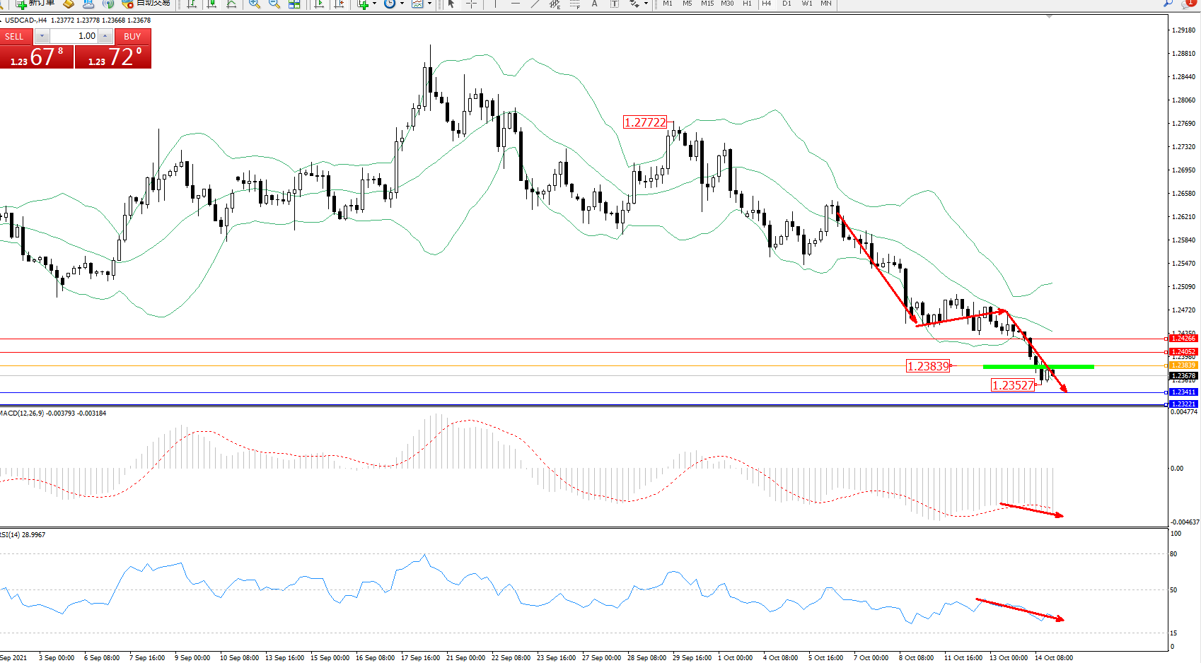 技术点评:空头动力延续布林带指标通道中下轨区间持续震荡下行,空头下行动力未见止步迹象,布林带指标通道呈向下移动态势良好,低位抵达1.23527位置得到短暂整理,但整体下行趋势依旧未变,MACD指标处于空头区域维持整理缓慢向下移动,RSI指标处于空头区域低位维持弱势下行;