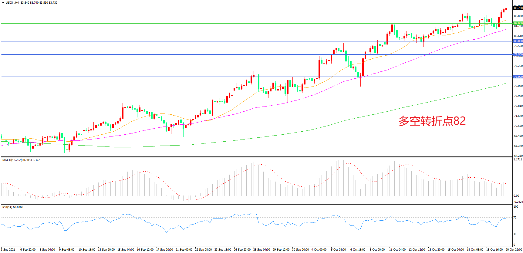 多空转折点:82.00