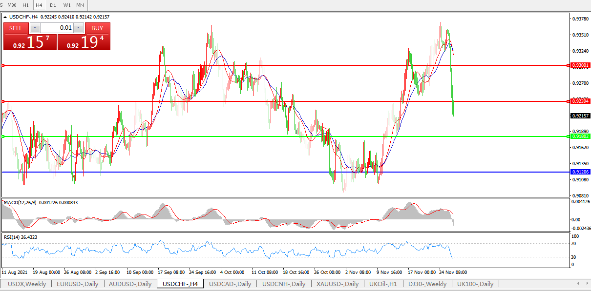 美元兑瑞郎USDCHF 4小时图: