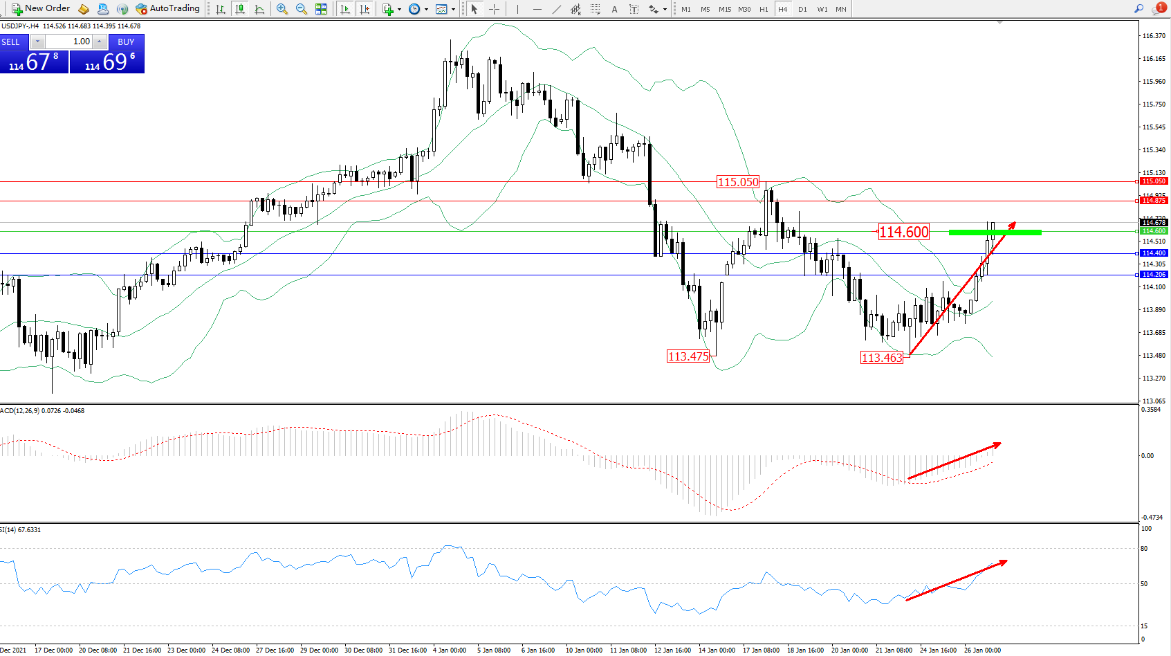 交易策略:114.600上方看涨,目标114.875、115.050