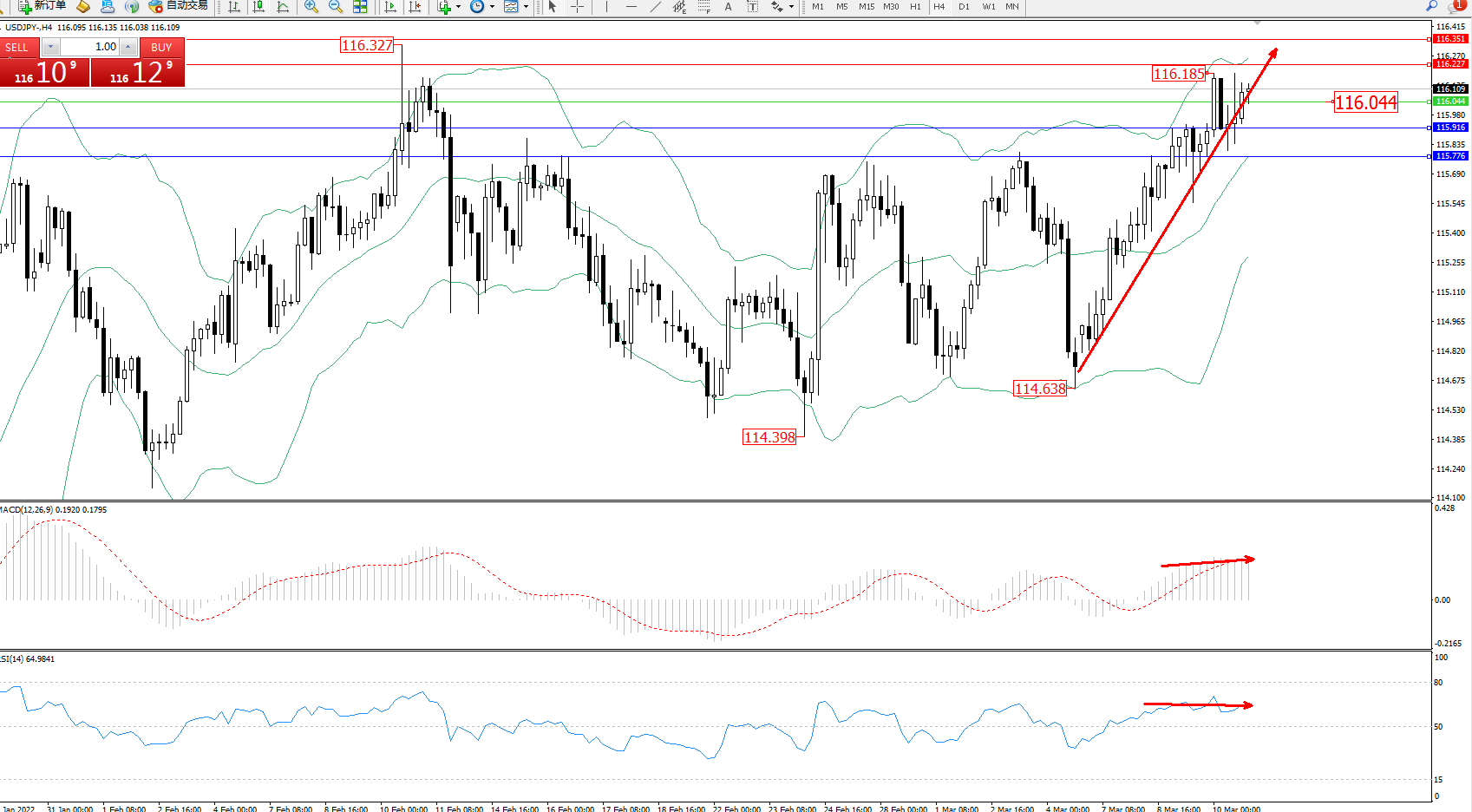 交易策略:116.044上方看涨,目标116.227、116.351