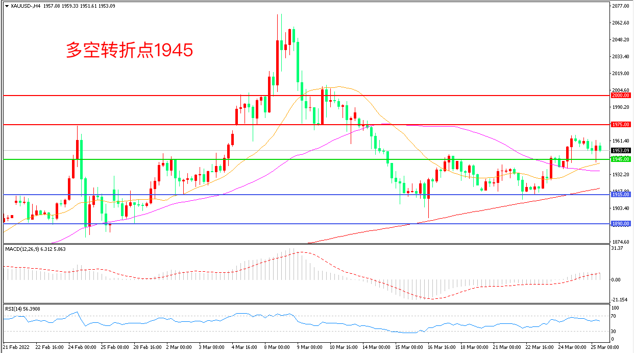 备选策略:在1945.00之下看跌,目标1915.00        1890.00