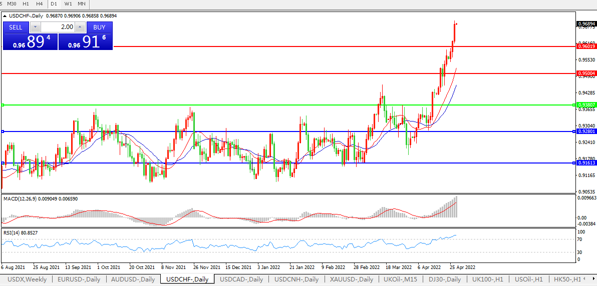 全球增长忧虑加大,美元兑瑞郎持续拉升