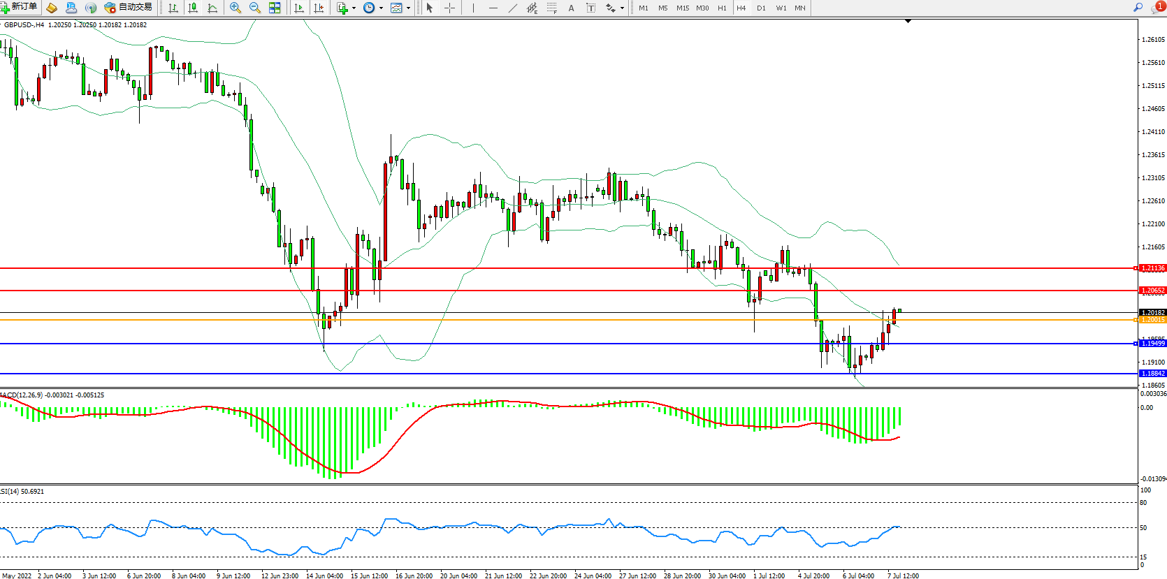 英镑美元GBPUSD ——4小时K线图显示: