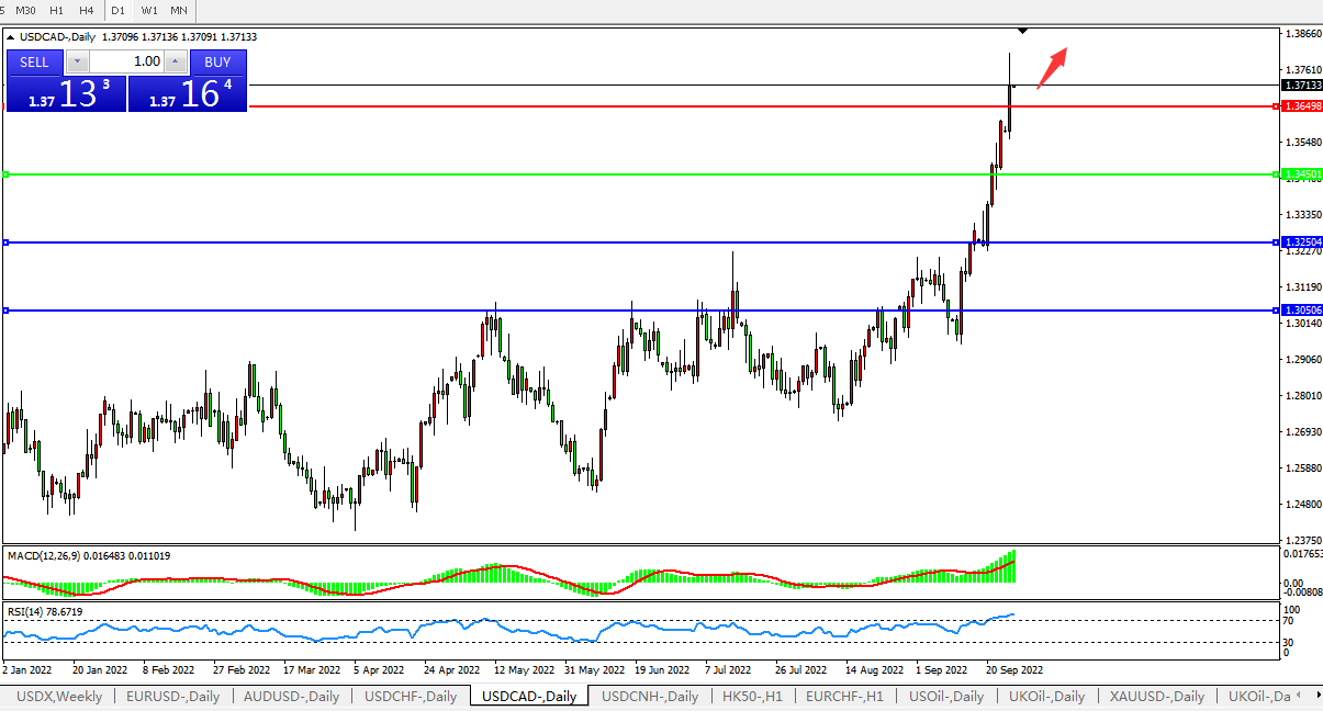 美元兑加元USDCAD  日线图: