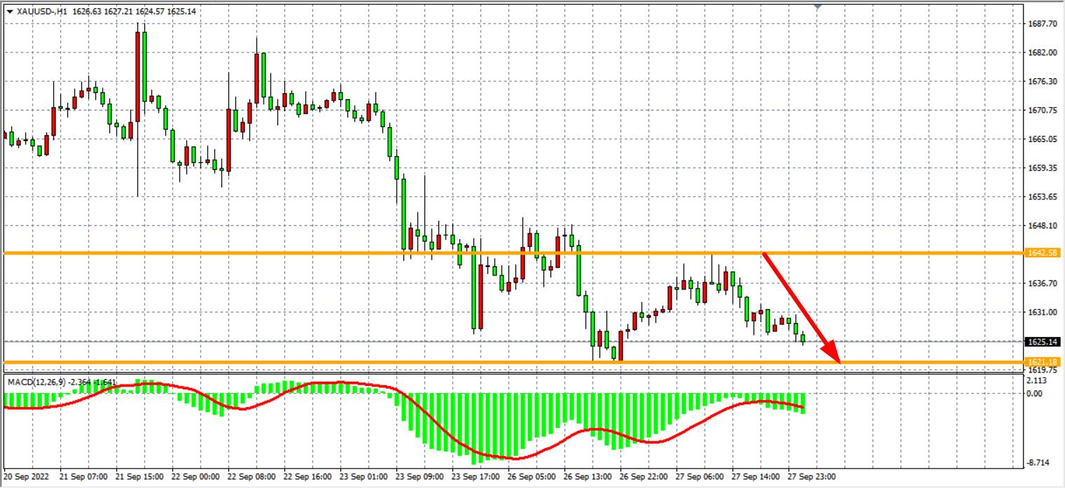 交易策略:在1642.00之下看跌,目标1621.00            1610.00