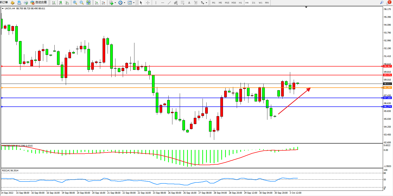 布油UKOil——4小时K线图显示: