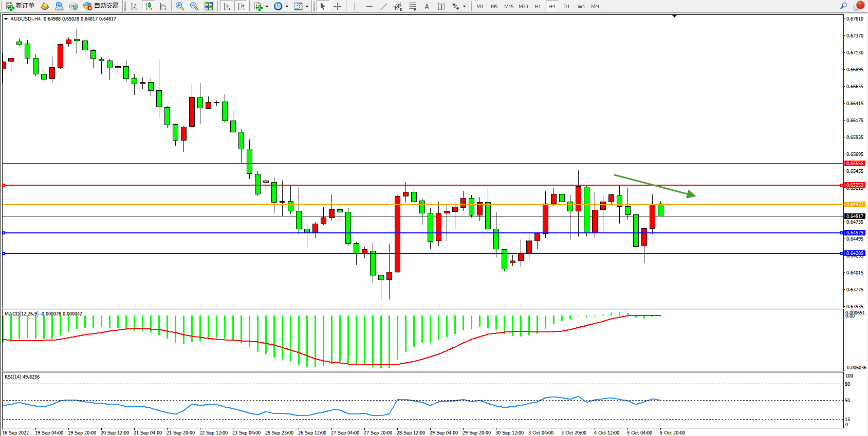 澳元美元AUDUSD——4小时K线图显示: