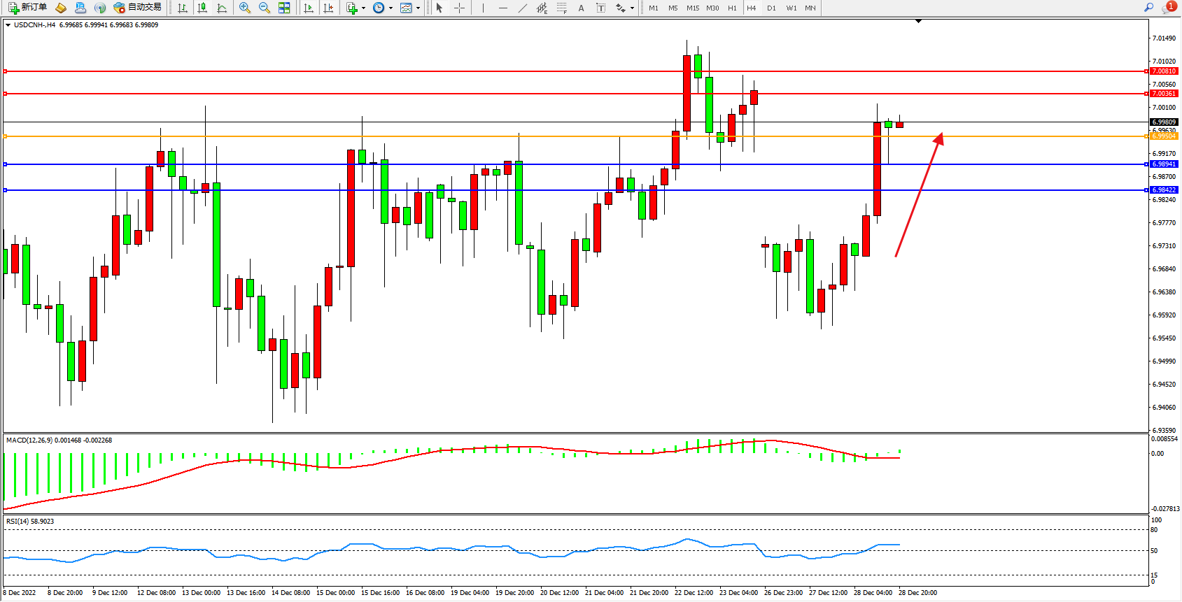 交易策略:6.99504上方看涨,目标7.00361、7.00810