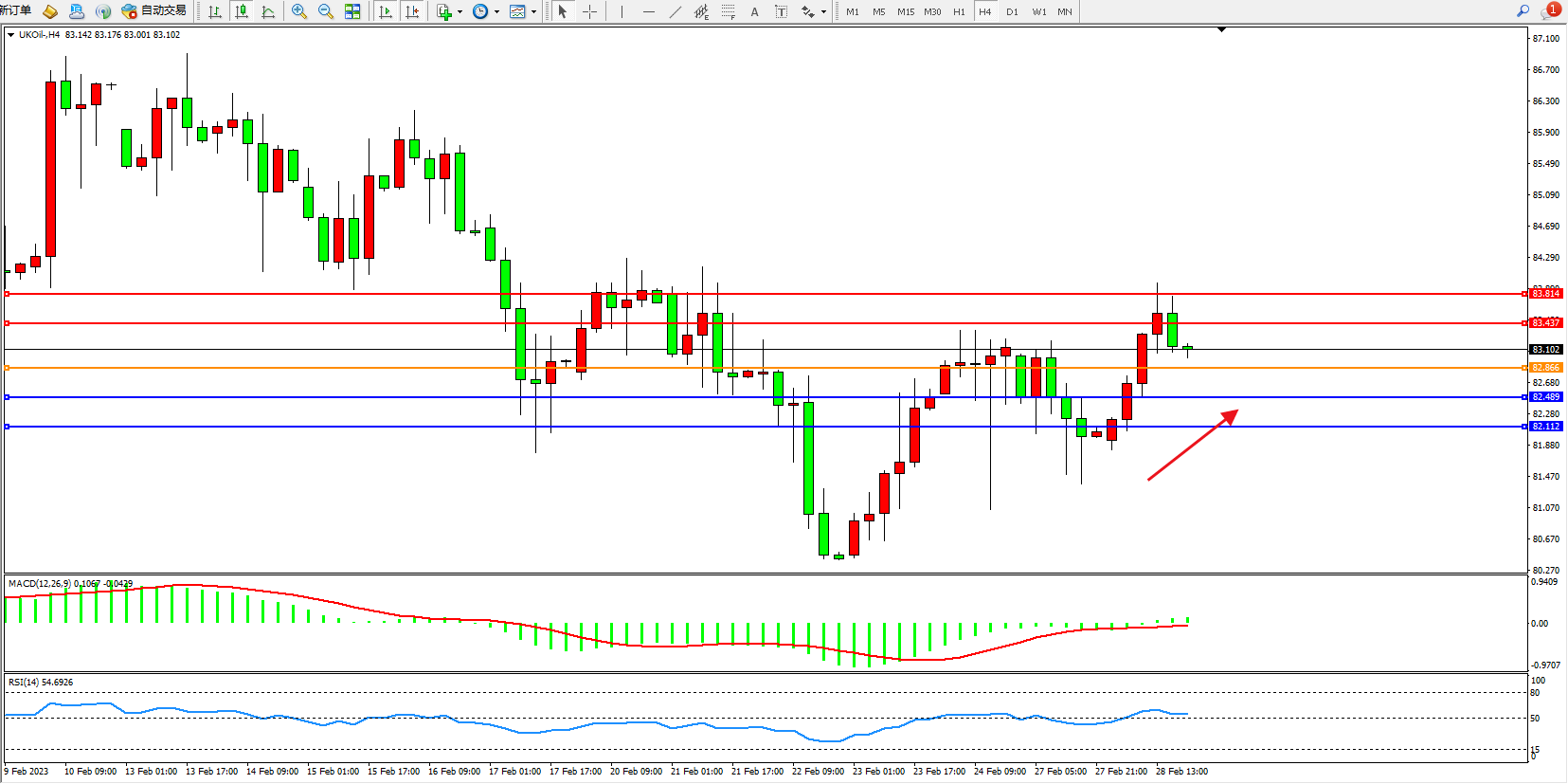 交易策略:82.866上方看涨,目标83.437、83.814