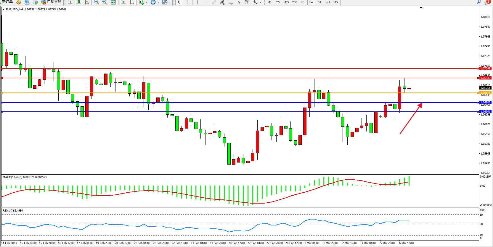 交易策略:1.06673上方看涨,目标1.06933 1.07099