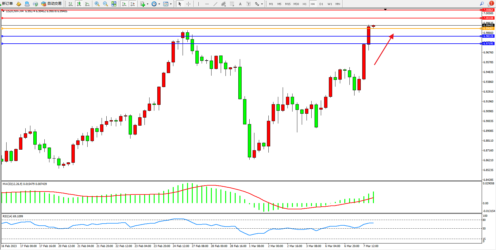 交易策略:6.99087上方看涨,目标7.00108 7.00864