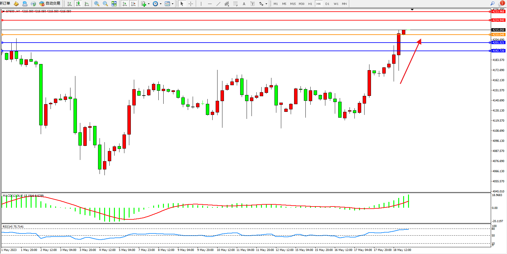 标普SP500——4小时K线图显示: